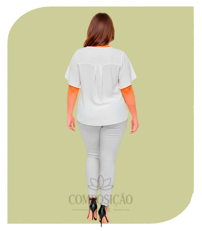 Blusa Plus Size Branca em Tecido Duna com Detalhes Dourados