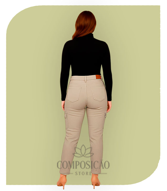 Cintura Alta: Proporciona excelente sustentação e realça a cintura, permitindo combinações perfeitas com blusas por dentro da calça ou croppeds.