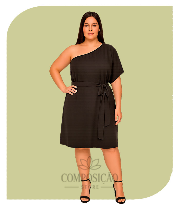 Macaquinho Curto Preto Plus Size – Ombro Único (G2)