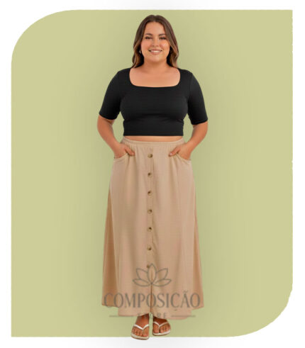Tamanho em Destaque: Tamanho 48 (ótimo para destacar que a peça atende ao público Plus Size).