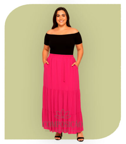 Saia Longa de Babados e Cós Elástico