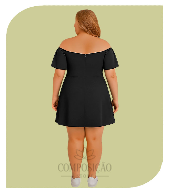 Vestido Curto Preto Plus Size – Decote Ciganinha
