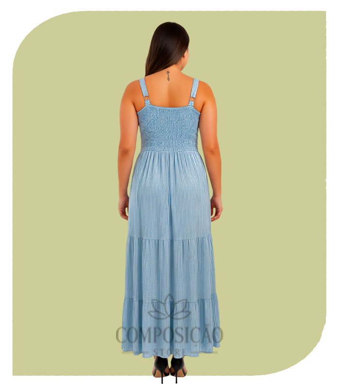 Modelo: Vestido Longo, Saia em Camadas (Três Marias).