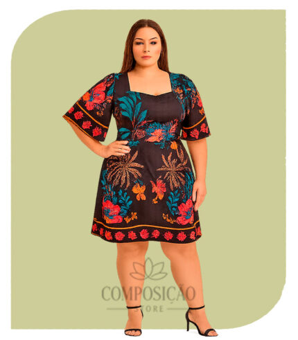 Vestido Curto Estampado Tropical Plus Size – Estilo Farm