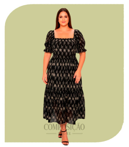 Modelagem Plus Size (GG): Corte que oferece um caimento elegante e confortável, com cintura império que alonga a silhueta.