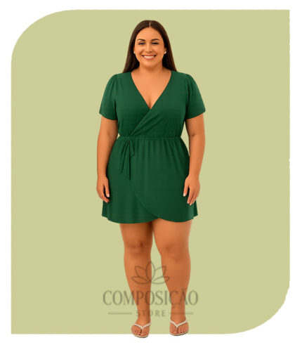 Vestido Curto Transpassado Plus Size – Puro Charme (Cor Verde Militar)