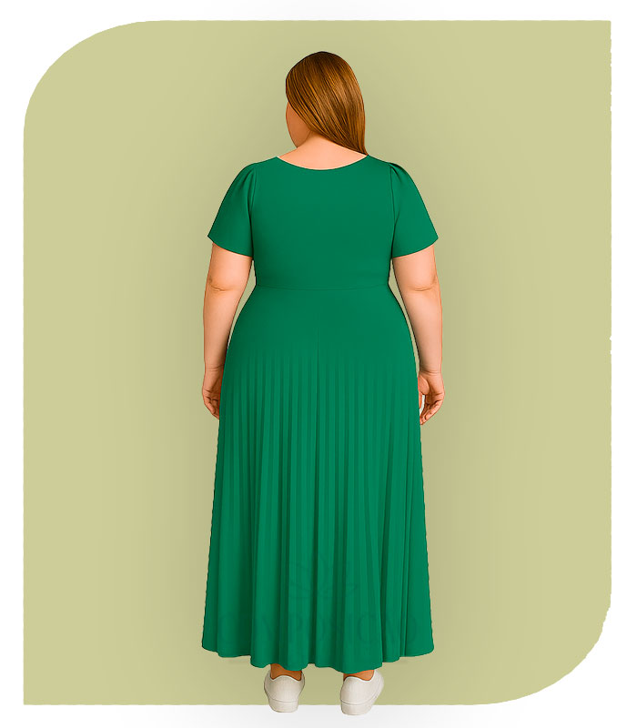 Vestido Longo Plissado Plus Size – Verde Esmeralda