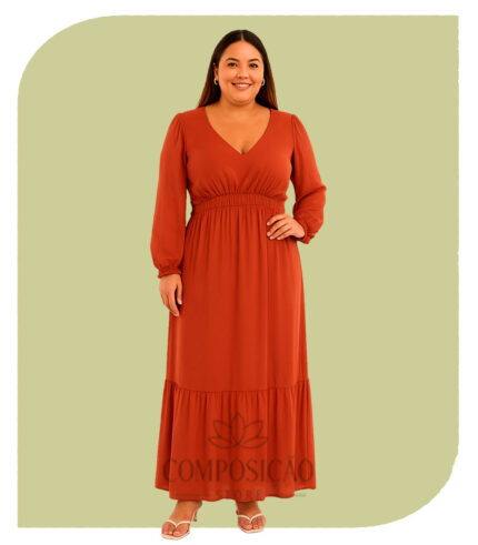 Vestido Longo Festa Plissado Plus Size – Terra Cota
